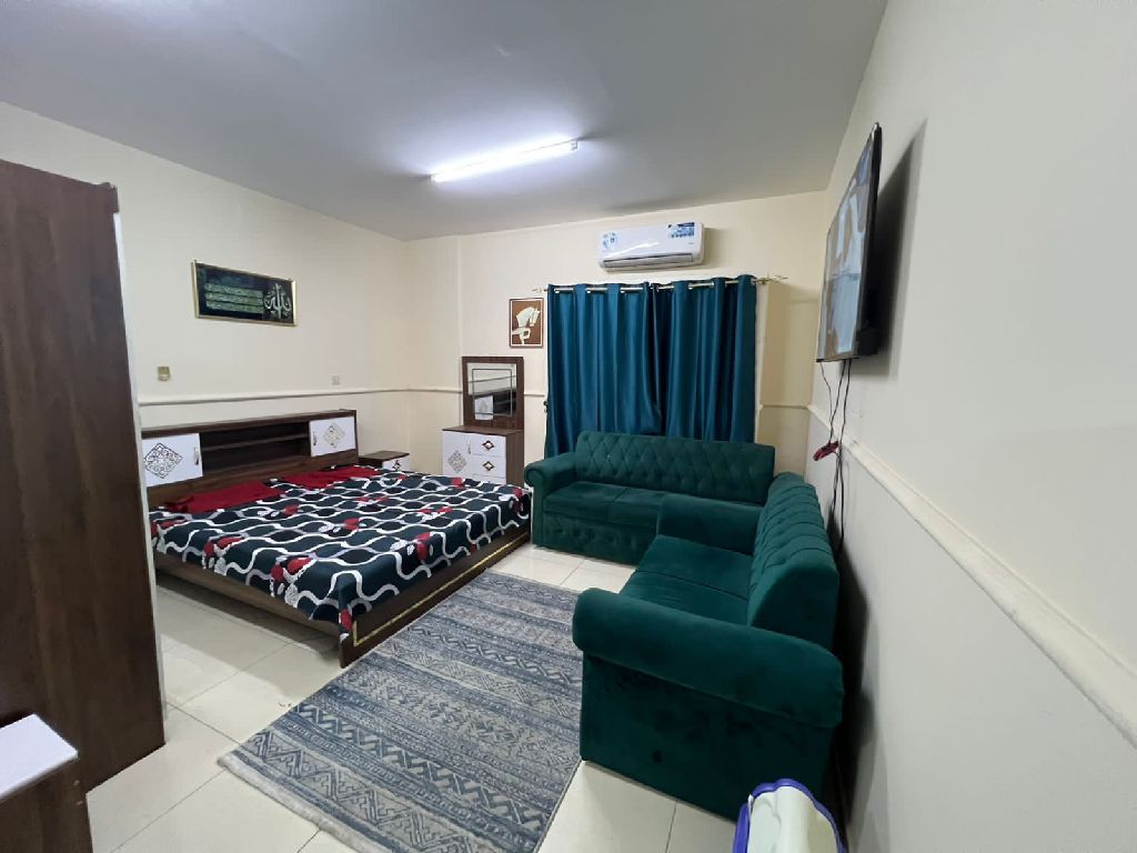 For rent - Super Lux Furnished Studio Apartment in Al Qulaya'ah, Sharjah. Close to the lake and all amenities (grocery stores, restaurants, transportation) Super Lux furnished studio with high - end, clean, and elegant finishes. Quiet and desirable location. Suitable for families. Internet included. For inquiries, please call