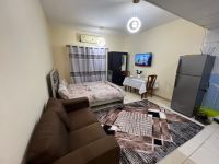 Furnished studio for rent in Al Qulaya, Sharjah, close to the Corniche and all services, fully furnished and ready to move in, suitable for individuals or employees, rent 3200 dirhams per month including internet only