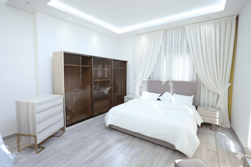 Muwailih Commercial Area, near Khalifa University or Al Dhahia Mall, offers a master bedroom with a large balcony and private bathroom for rent in a very clean and quiet apartment