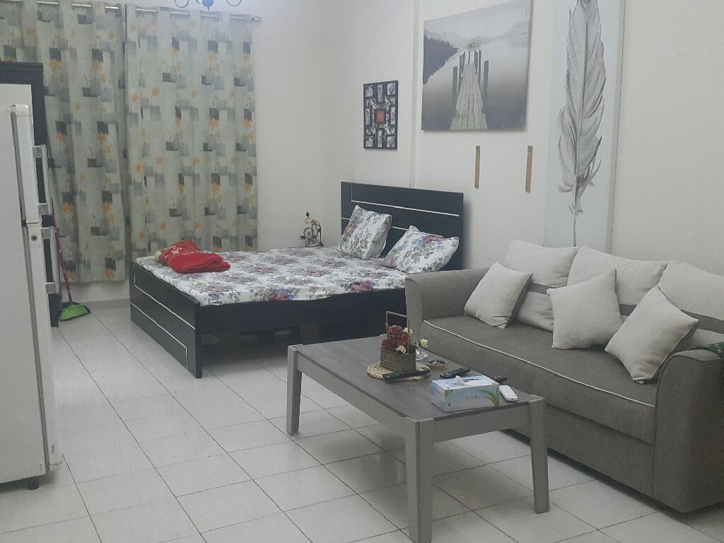 استوديو مفروش شهري الشارقة المجاز 3 قريب حديقة الصفيا موقع تمام فرش نظيف مرتب مطبخ شبه منفصل مع النت فقط 3200 اتصال