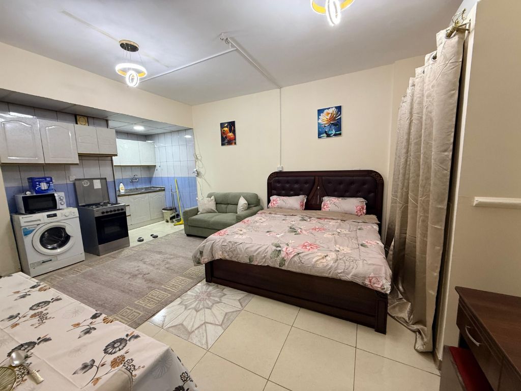 Brand new furnished studio for monthly rent in Al Qulaya on the main road. Spacious layout, super deluxe furniture, and sea view. rent AED3500 per month including internet. Prime location close to services. Annual studios, apartments, and villas also available