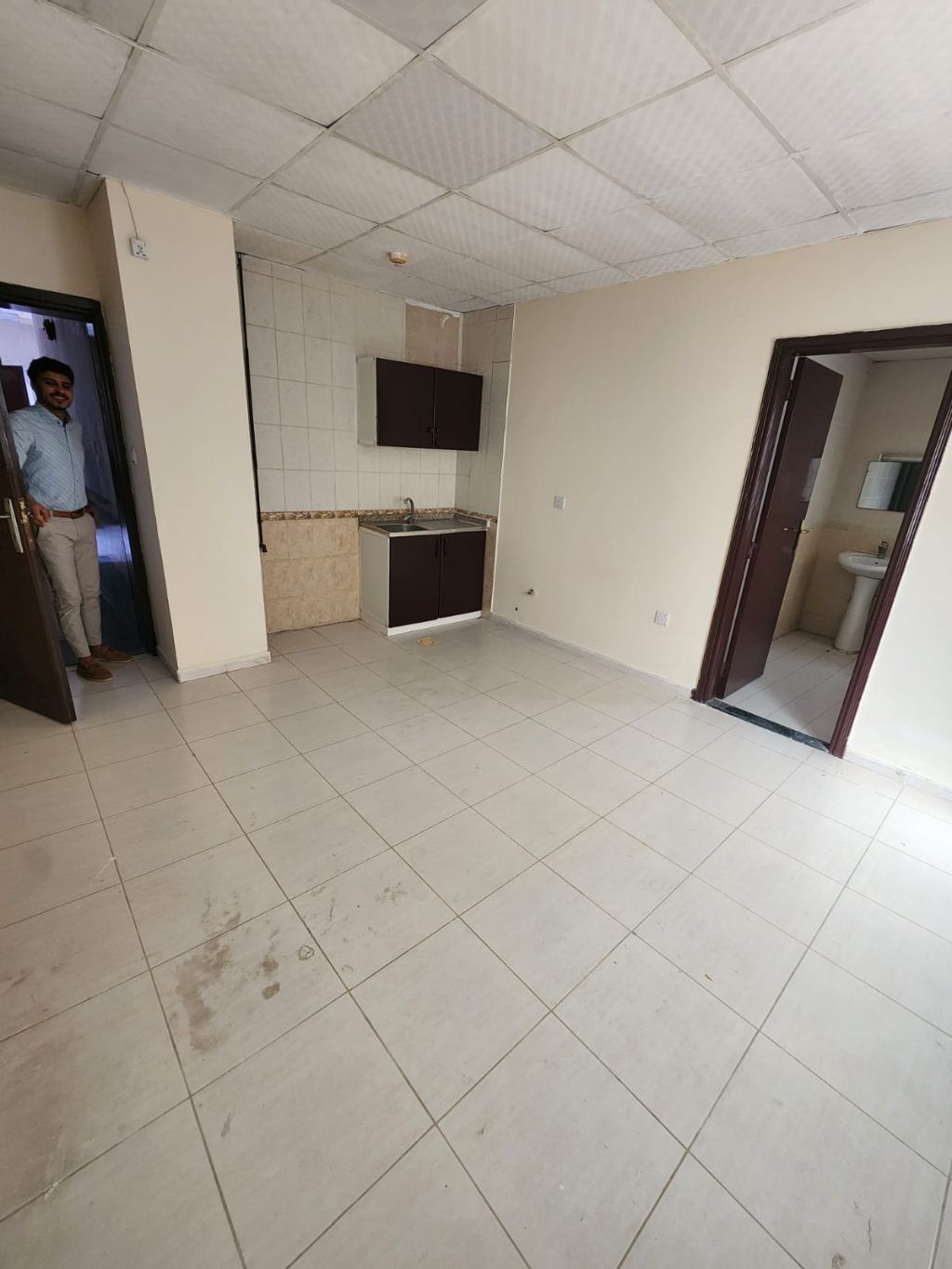 Studio for annual rent in Al Musalla, bachelors allowed, suitable size, well - located near Nesto Al Butina and Al Mubarak Center, ready for immediate occupancy, ideal for employees or students. Price AED18000/ year with flexible payment options