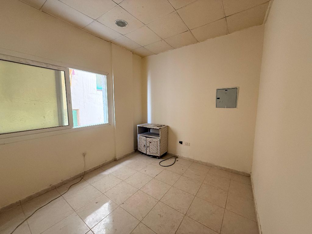 Cheapest studio for rent - bachelors contract in Al Butina, Sharjah - modern finish + open view + bath + kitchen, prime location near services, markets & hospitals. rent 14000 in 6 cheques