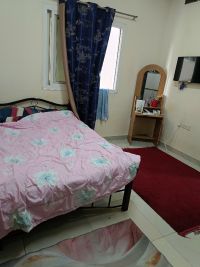 For monthly rent A furnished studio apartment with beautiful and spacious furniture in Al Naba'Bills included, no deposit required. Strategically located near Lulu Hypermarket, the city center, and all public services and amenities. easy access to the Dubai exit. Located in a modern building with central air conditioning and gas, offering an open view and comfortable lighting