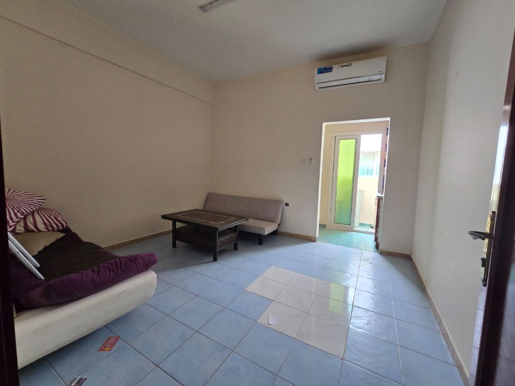 Studio for rent in Al Nasserya - Multiple options available in different blocks, split AC, balcony, very small kitchen, and sandy parking. Suitable for families or bachelors, in a quiet area close to services. Annual rent AED16000. Contact