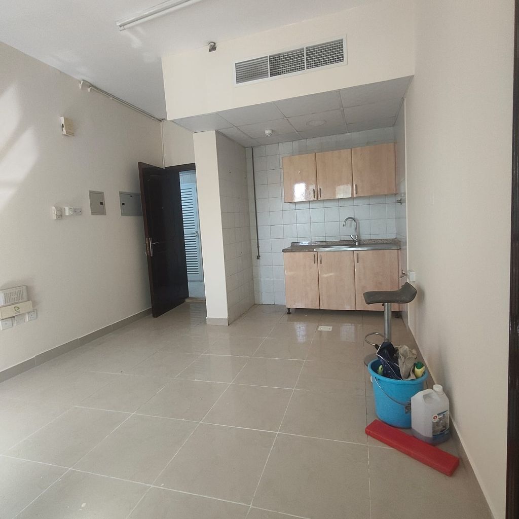 For annual rent in Sharjah, Al Naba'area, studio apartment at an incredibly low price. Spacious with an open view, central air conditioning, central gas, first occupancy, clean and tidy kitchen, bathroom with super deluxe finishing. The building is modern, well - organized, and fully tidy, equipped with a 24/ 7 security and surveillance camera system. It boasts a strategic location on the main road