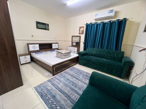 A studio apartment for annual rent in Sharjah, Al Musalli area, with a very spacious area, central air conditioning, central gas, and free maintenance throughout the rental period. It is close to a bus stop and close to all public services to meet daily needs, and has easy access to the Dubai exit. There are payment facilities available, up to 4 or 6 installments annually