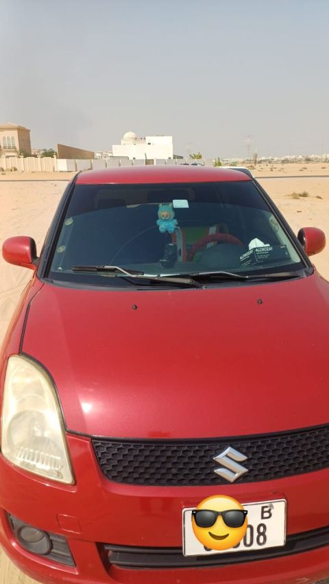 سوزوكي سويفت رقم 3 خليجي، لون أحمر خارجي، لون داخلي رمادي. مسرفسة كاملا ممشى 365000 كم والسعر 9900 درهم