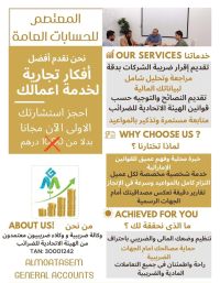 المعتصم للحسابات العامة والضرائب هل تبحث عن خدمات محاسبية وضريبية موثوقة في الامارات نحن هنا لدعم أعمالك بخبرة ودقة عالية. مسك الدفاتر والحسابات التسجيل في ضريبة القيمة المضافة (VAT) تقديم الاقرارات الضريبية خدمات الاسترداد الضريبي استشارات مالية الاستشارة الأولى مجانا
