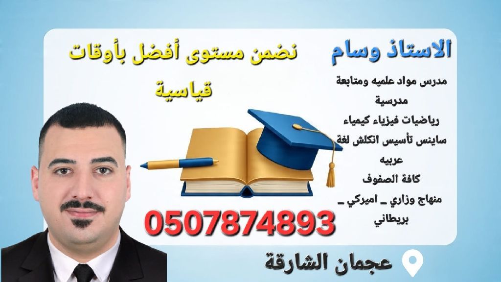 المدرس وسام. مدرس مواد علمية ومتابعه مدرسية اعطاء كافة المراحل من التأسيس الى الثاني عشر. خبرة أربع سنوات بالتدريس في الامارات. منهاج وزاري أميركي بريطاني اعطاء بريتيف في المنزل