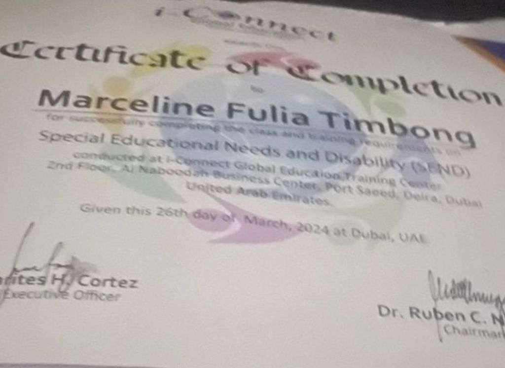 My name is Marceline I am a teacher with 2 years of experience and I give special educational needs