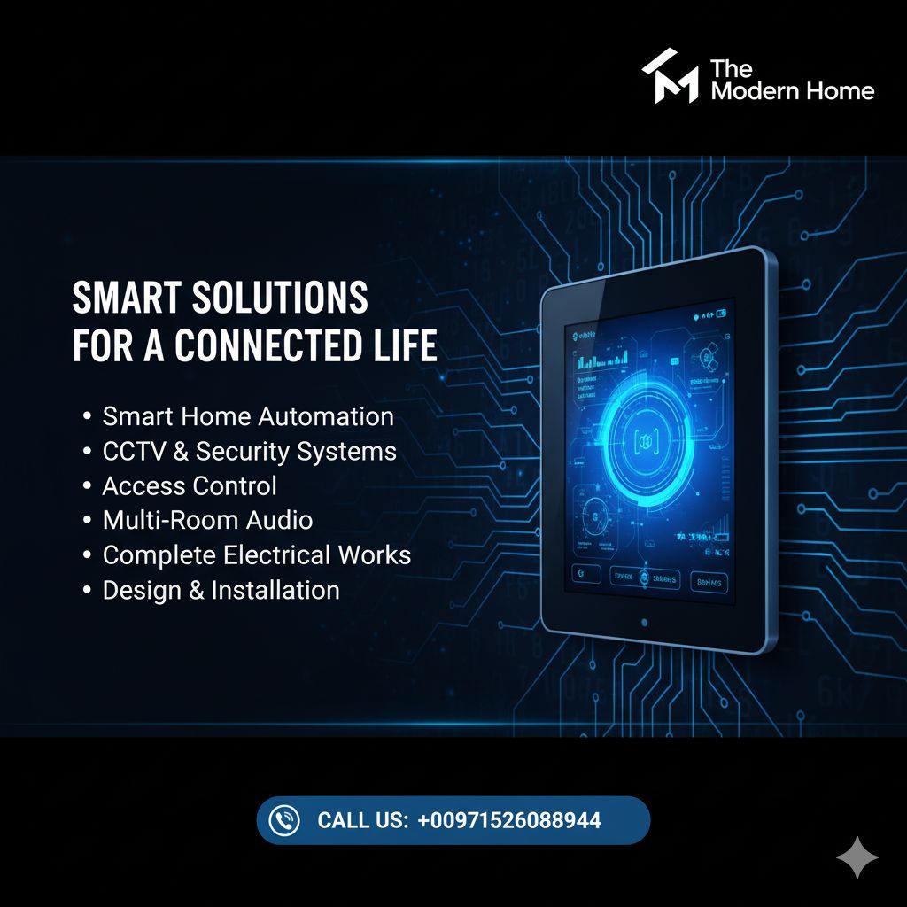 Maintenance, services and installations, sound system & surveillance cameras & Smart home, electrical works, finishes, maintenance, plumbing, gypsum, imported, and working on plans, and there is a full team for the work