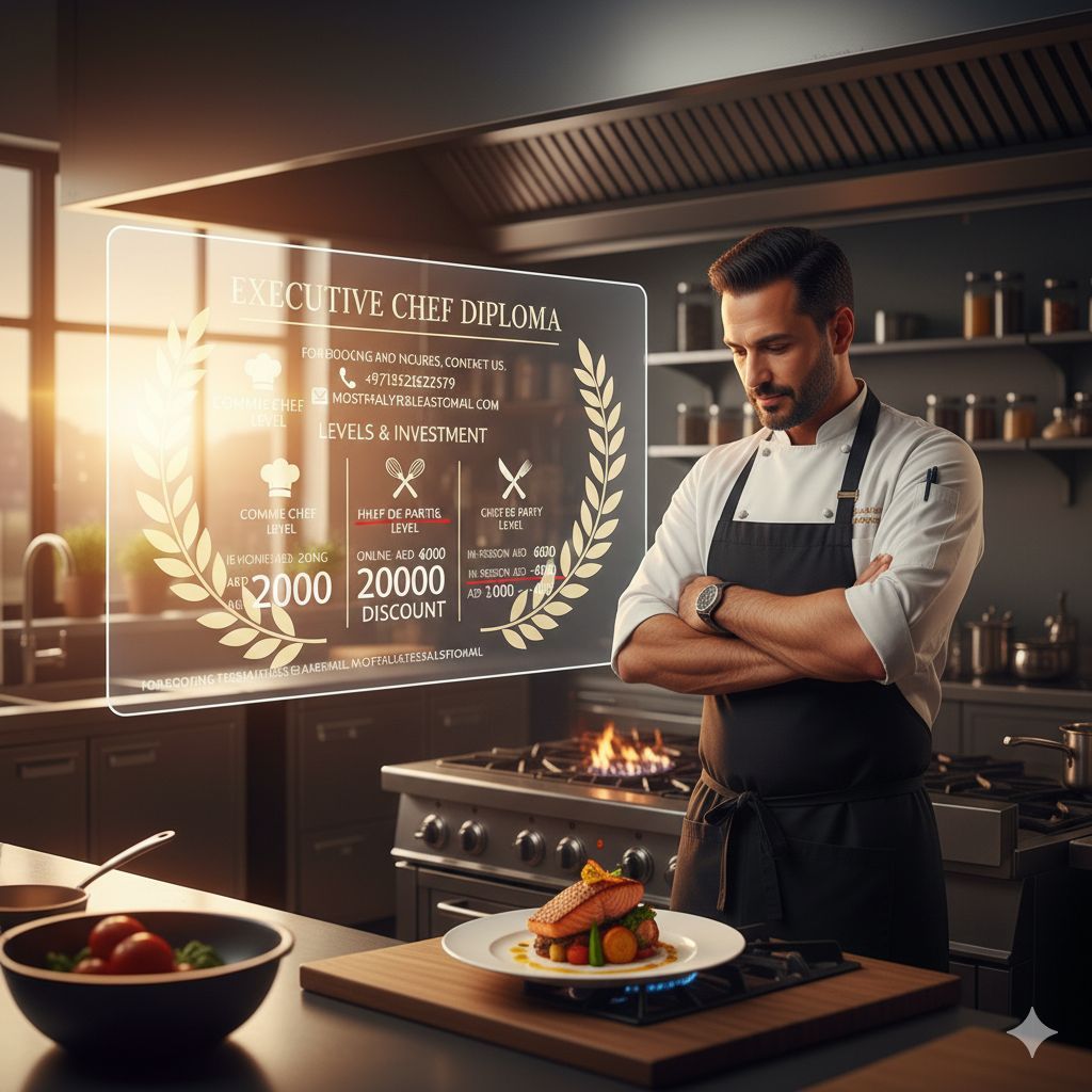 في عالم الطهي مع دبلوم الشيف التنفيذي المحترف تقديم الشيف التنفيذي المحترف مصطفى على للعمل في الفنادق والمطاعم الفاخرة ملخص ما تعلمت في مجال الأغذية والمشروبات خبرة 15 سنة الدبلوم أربع مستويات المستوى الأول كوميس شيف المستوى الثاني ديمي شيف المستوى الثالث شيف دبرتي المستوى الرابع شيف تنفيذي