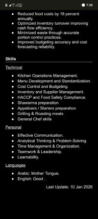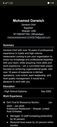 شيف مشاوي وشاورما ومقبلات، خبرة داخل الدولة 12 سنة ابحث عن فرصة عمل جيدة
