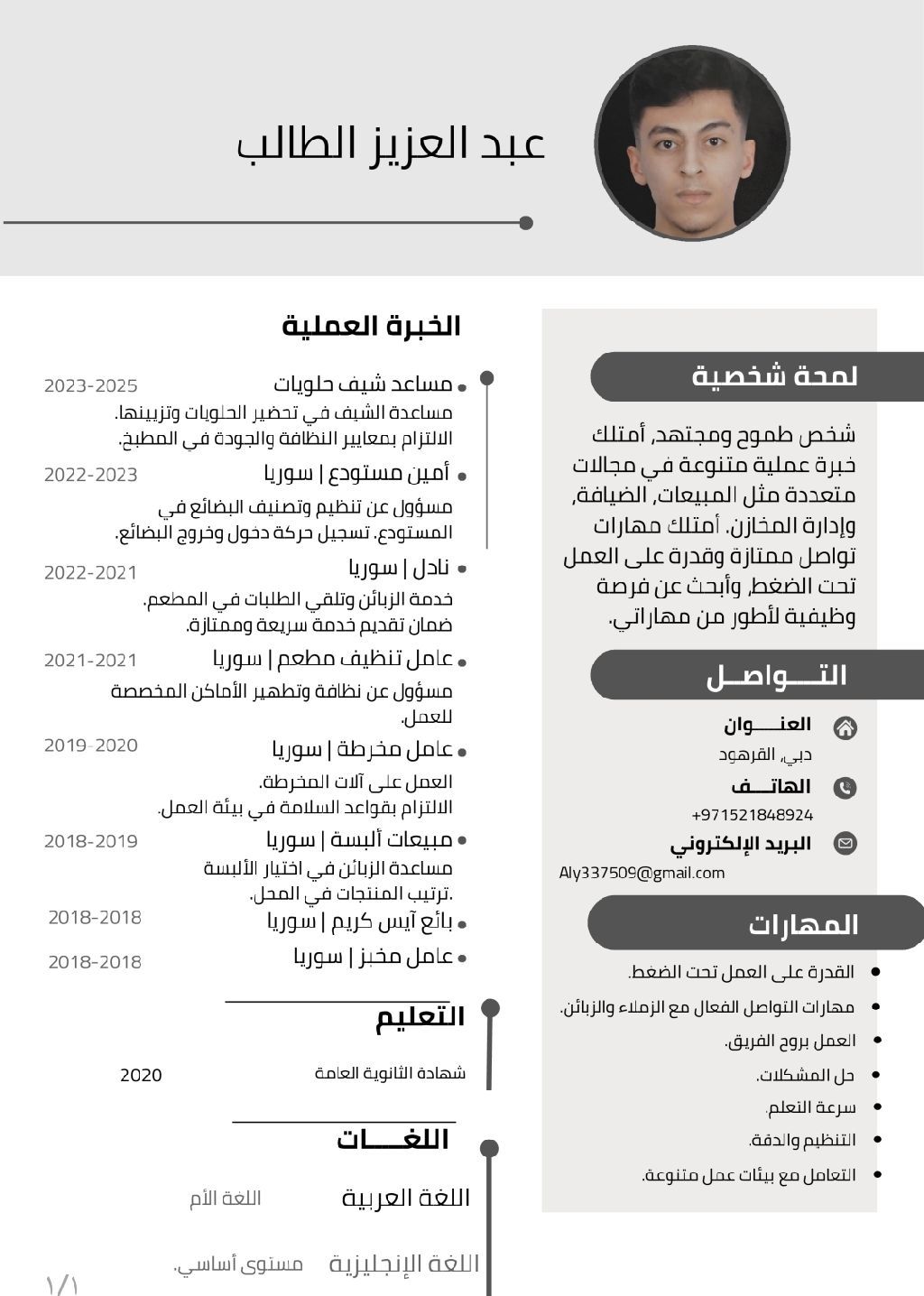 شاب سوري مقيم في دبي، يبحث عن عمل في أي وظيفة أن كانت أبلغ من العمر 22 سنة موجود في الامارات منذ سنتين ونصف ليس لدي اقامة