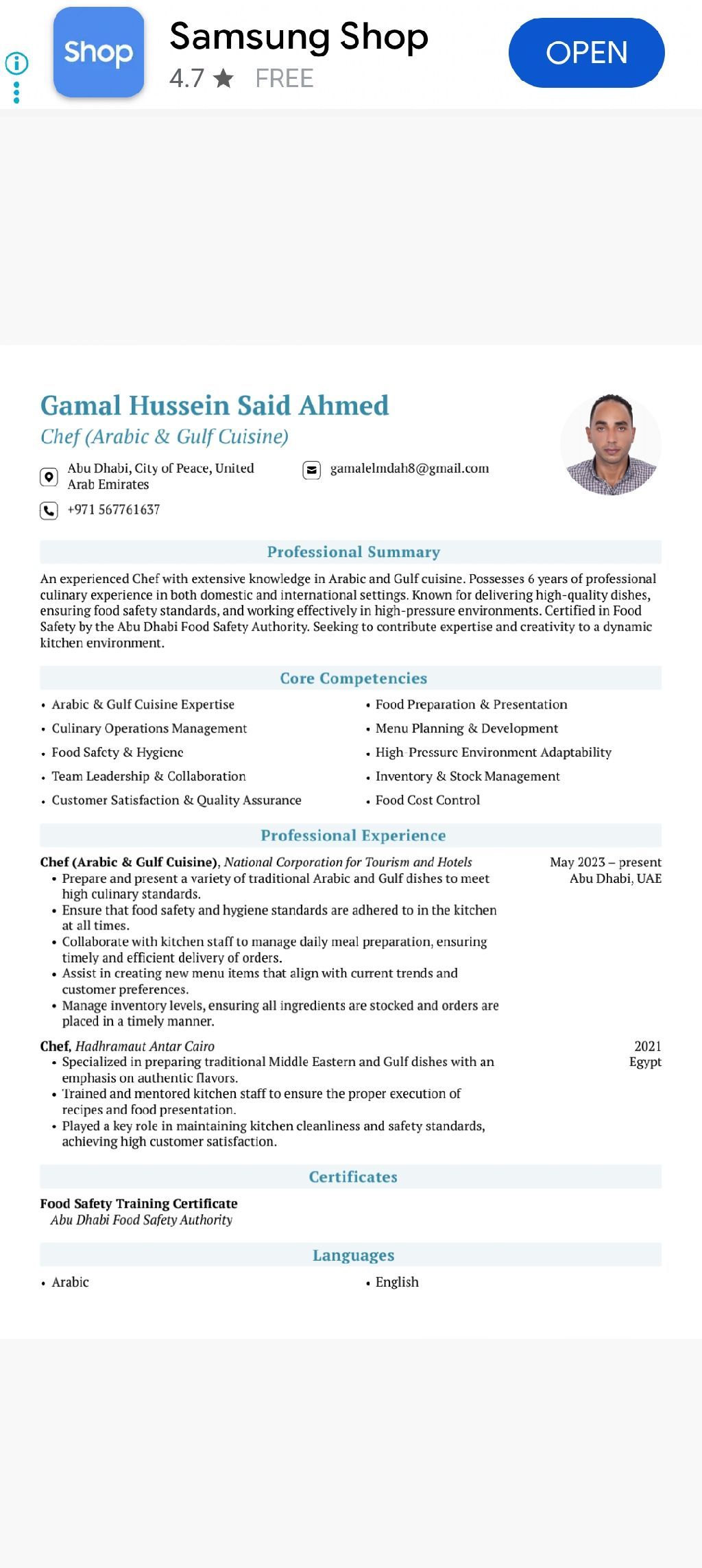 ابحث عن وظيفة طاهي اطعمه عربية وخليجية