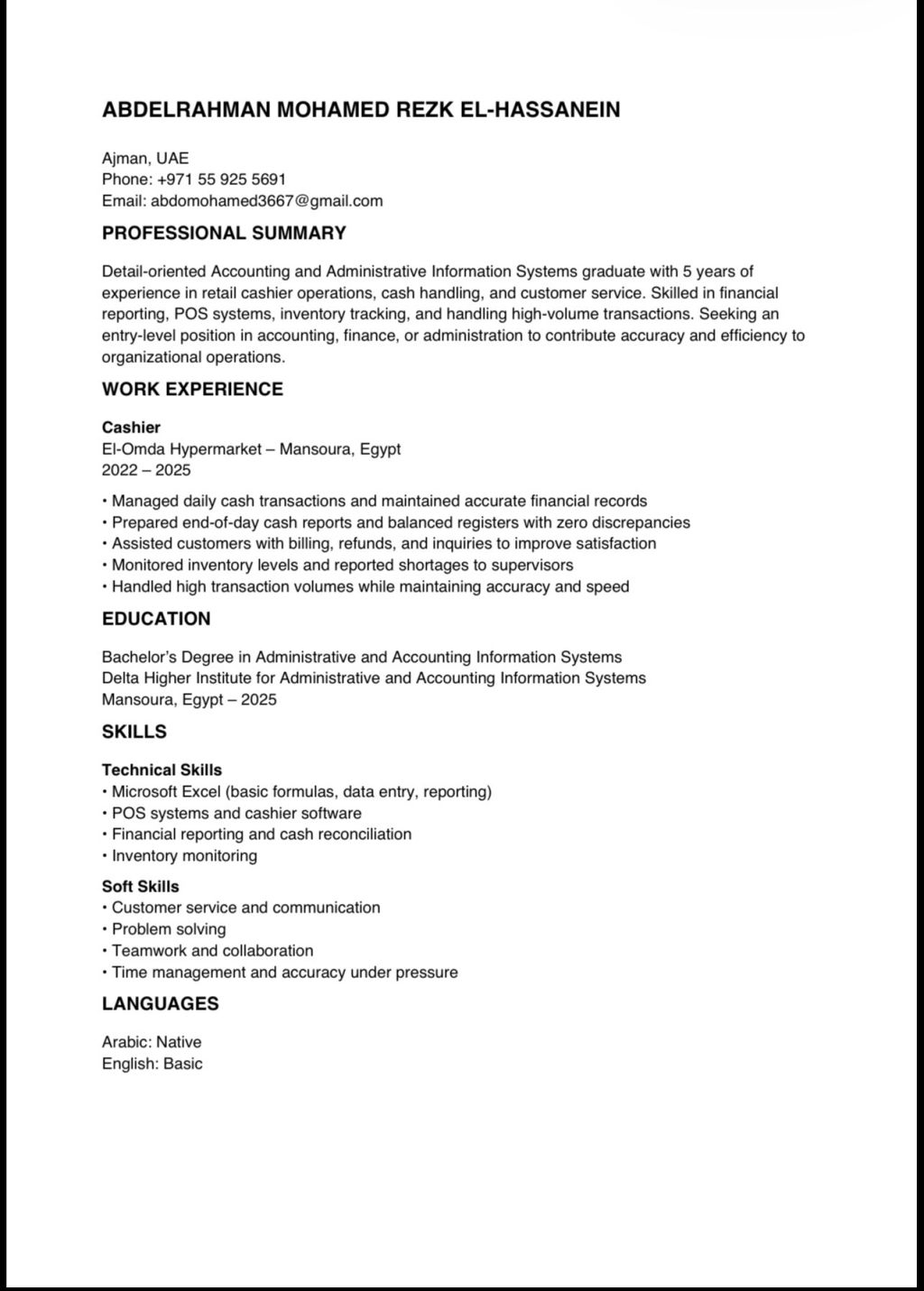 أنا محتاج شغل معيا إقامة وخربج بكالوريوس واشتغلت كاشير قبل كده لو في فرصه أي شغل متاحه