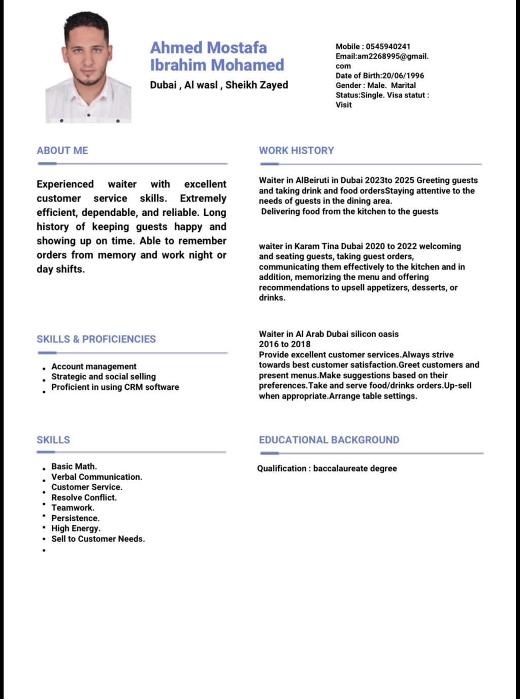 أنا اسمي أحمد ابحث عن عمل لدي المطاعم لدي خبرة من 2018