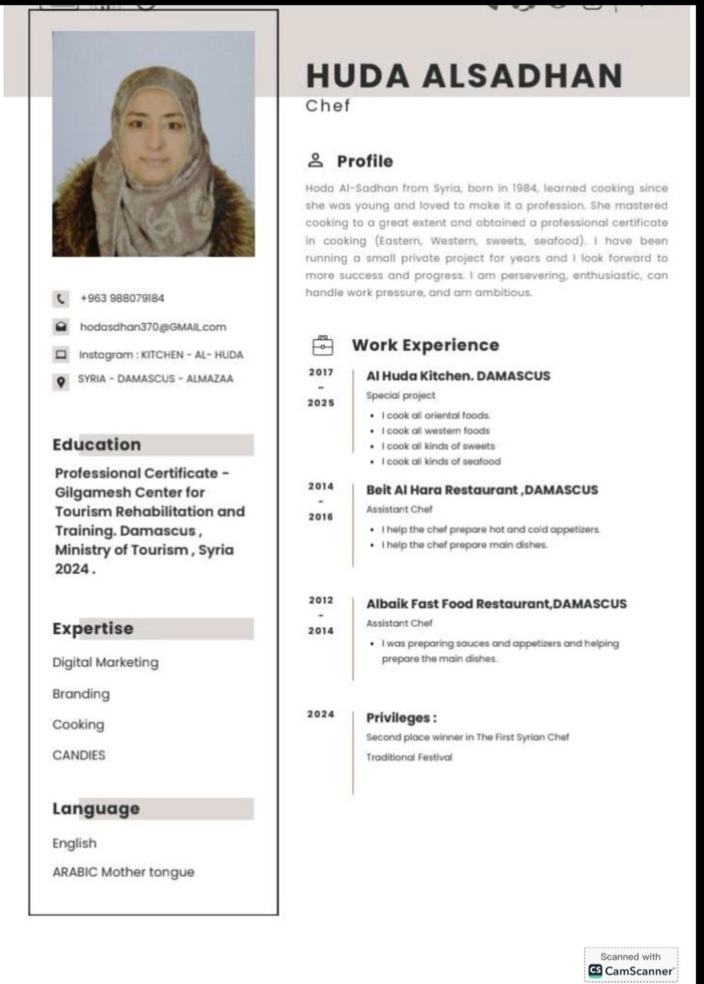 شيف سوري "درجة أولى" متاحة للعمل فورا. بين نكهات الأصيلة والاحترافية العالمية. اذا كنت تريد أن تجعل هذه تجربة ضمن مطعم أو حتى عائلتك في منزل يسرني أن أقدم خبرتي بين يديكم. حاصلة ع مرتب ثاني في مهرجان الشيف السوري خبيرة في طبخ (المشاوي الكبب بأنواعها. المقبلات. أرز بأنواعه. معجنات) التزام بأعلى معايير النظافة تحمل ضغط العمل متواجد في أبوظبي