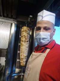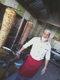Egyptian Shawarma Chef At the residence of Asma Faraj, teacher Shawarma 15 years of experience worked in Saudi Arabia, Egypt and the UAE on doubt and shear, seasoning meat and chicken, dissecting all kinds of sauces, salads, Crispy Falafel 35 years old