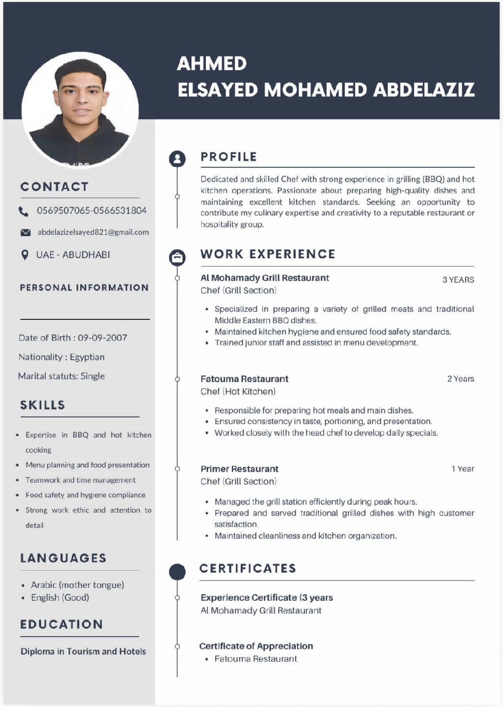 شيف مشويات وسخن خبرة 6 سنوات مصري متواجد داخل الدولة ابحث عن عمل