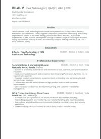 Food Technologist QC/ R D Food Safety Immediate Joiner Food Technologist with hands - on experience in QC, food safety, hygiene compliance, documentation, sensory evaluation, and fresh produce quality checks. Looking for roles in QC, Food Safety, Food Technologist, Production, or R D Available in UAE for immediate joining. Contact Location UAE