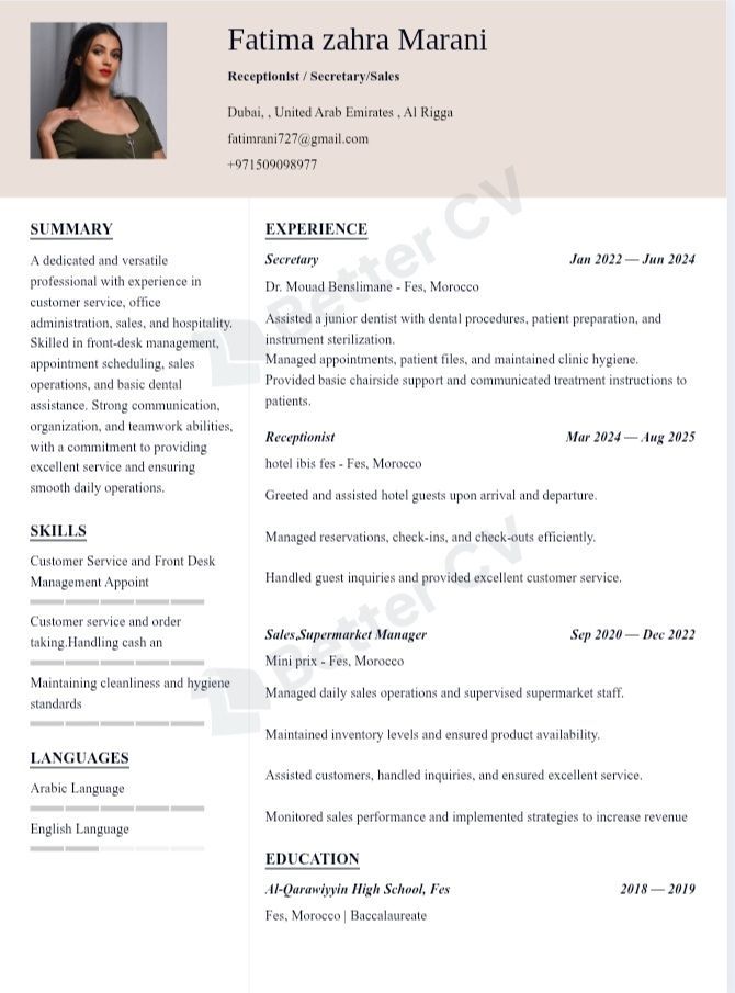 أنا فاطمة الا زهراء، شغوفة بتقديم أفضل تجربة في عملي، وأسعى دائما للابداع والتميز في كل مهمة أقوم بها