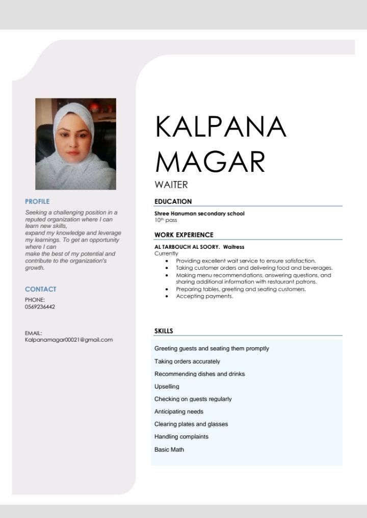 I am looking for a job as a waiter or cashier