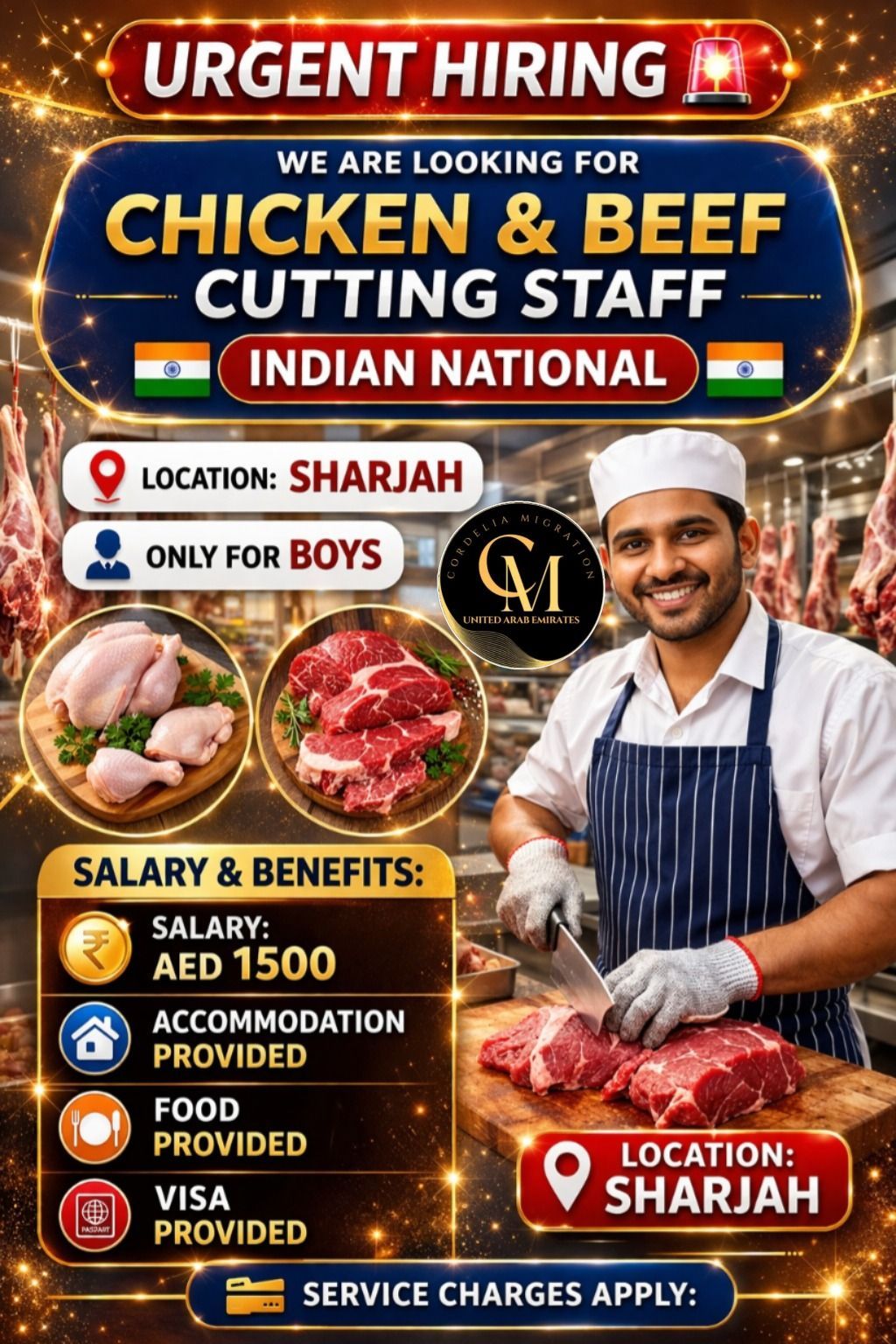 Hiring meat cutter and chicken cutter. job location Industrial Area Sharjah