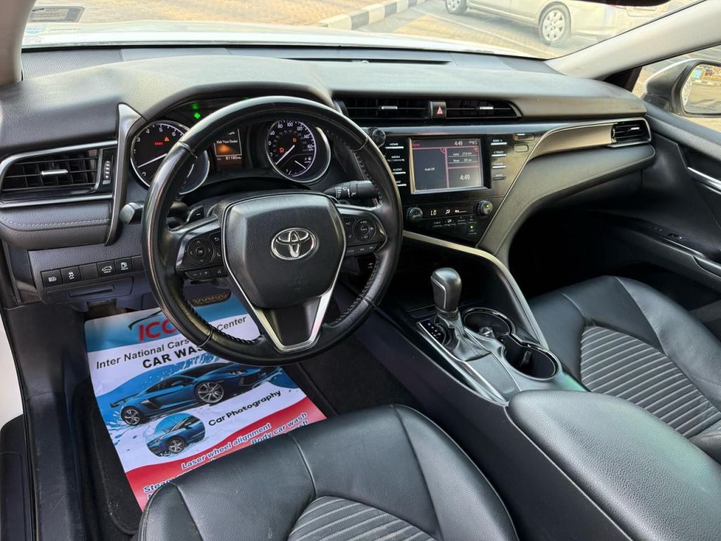 تويوتا كامري 2019 - مواصفات أمريكية، لون أبيض، مواصفات كاملة. سنة الموديل: 2019 - المسافة المقطوعة: 81,180 ميل (منخفضة) - اللون: أبيض - رقم الهيكل: 4T1B11HK9KU756464 - المحرك: 2.4 لتر، 4 أسطوانات، أوتوماتيك - المقصورة الداخلية: جلد أسود، فسيحة ومريحة