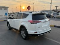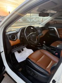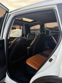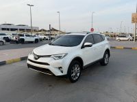 For sale: Toyota RAV4 2016 model, VXR trim, GCC specs, 2.5L engine with 4WD, clean usage. Regular maintenance. Notable features include sunroof, aluminum wheels, LED lighting, rear camera + front and rear sensors, leather seats with electric control + cooling/heating, smart entry and push-button start, cruise control, steering wheel controls, Bluetooth, USB. Safety systems: ABS, airbags. Exterior/Interior color: White/Maroon. Fuel/Gear: Petrol/Automatic.