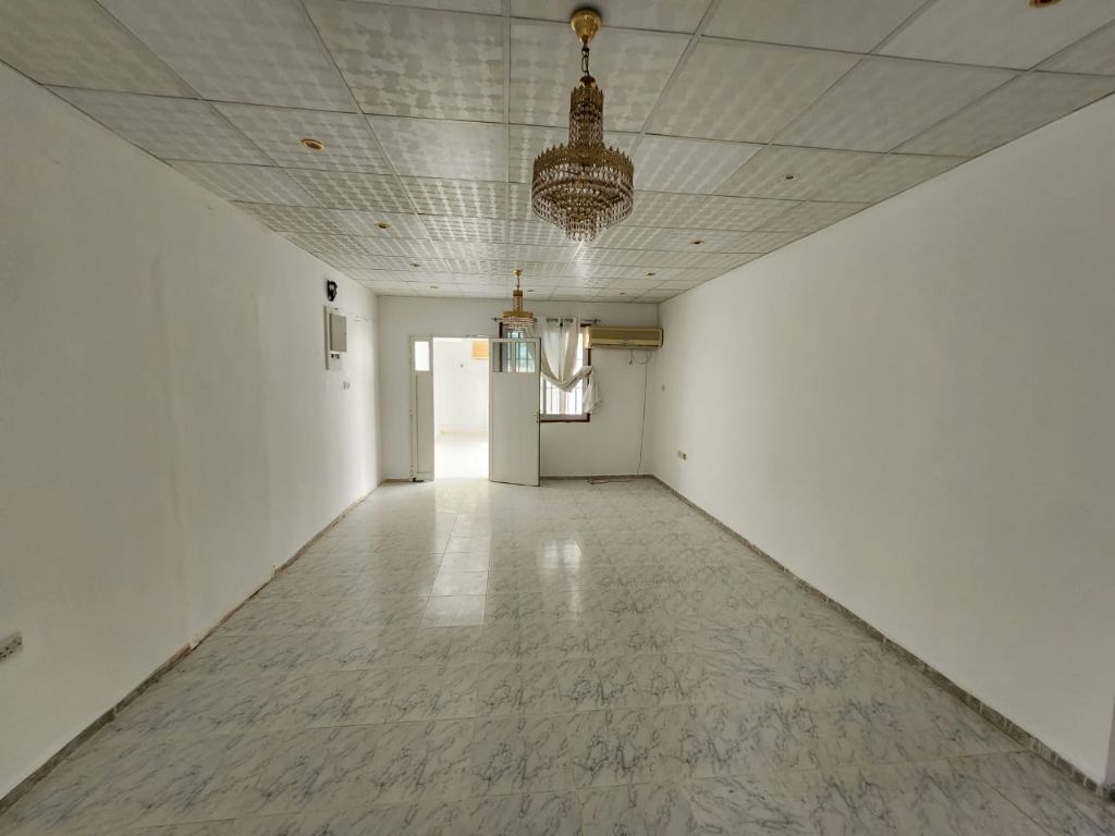A house for rent in Al Qadisiyah, Sharjah. It consists of two sections. The first section has two bedrooms, a living room, a kitchen, and three bathrooms. The second section has a bedroom, a living room, a kitchen, and a bathroom. The two sections can be combined into one house. The air conditioning is split and standard, and is fixed to the walls. There is a small courtyard. Sorry for brokers. Contact