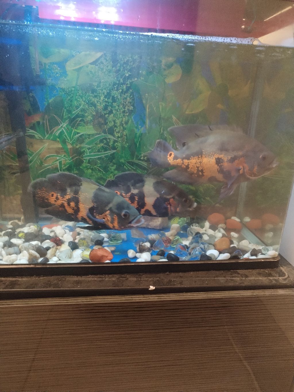 حوض سمك كبير مع 3 حبات سمك أوسكار حجم كبير بصحة جيدة جدا السعر 250 درهم