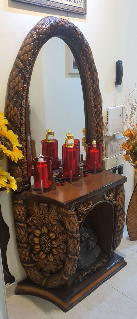 Console Mirror with light. small mirror broken 20cm in corner. This 2 pc mirror 1 console 1. In Sharjah Al Majaz 3. no delivery. 200 dirhams
