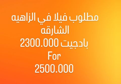 مطلوب فيلا في الزاهية الشارقة 4 غرف بادجيت 2 مليون ونصف