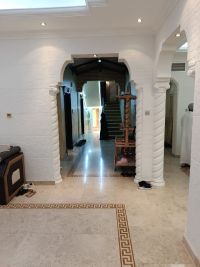 للبيع فيلا في القرائن مساحة 17 ألف قدم الفيلا بالكامل رخام مكونة من 2 طابق الدور الأرضي 2 صالة + غرفة طعام + 2 غرفة واحدة ماستر + 3 حمام + مطبخ كبير + مخزن الدور الثاني 3 غرف واحدة ماستر + صالة + مطبخ تجهيزي + 2 حمام من الخارج 2 ملحق واحد مجلس مع حمام وبالخلف مخزن الملحق الثاني مطبخ كبير + غرفة غسيل + حمام + غرفة عاملة منزلية ماستر 2 موقف يسع 6 سيارات مساحة حديقة كبيرة تسع بناء فيلا عليها عمر 16 سنة