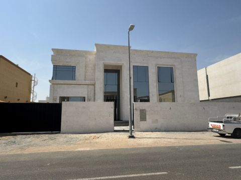 فيلا للبيع في الشارقة منطقة الحوشي المساحة 10000 قدم موقع متميز قريبة من شارع مليحة مكونة من 6 غرف نوم ماستر وصالة ومجلس وملحق مكون من مطبخ وغرفة عامل منزليه وغرفة غسيل الفيلا تشطيب مودرن ملبسه حجر بالكامل السعر 4 مليون و700 ألف درهم قابل للتفاوض