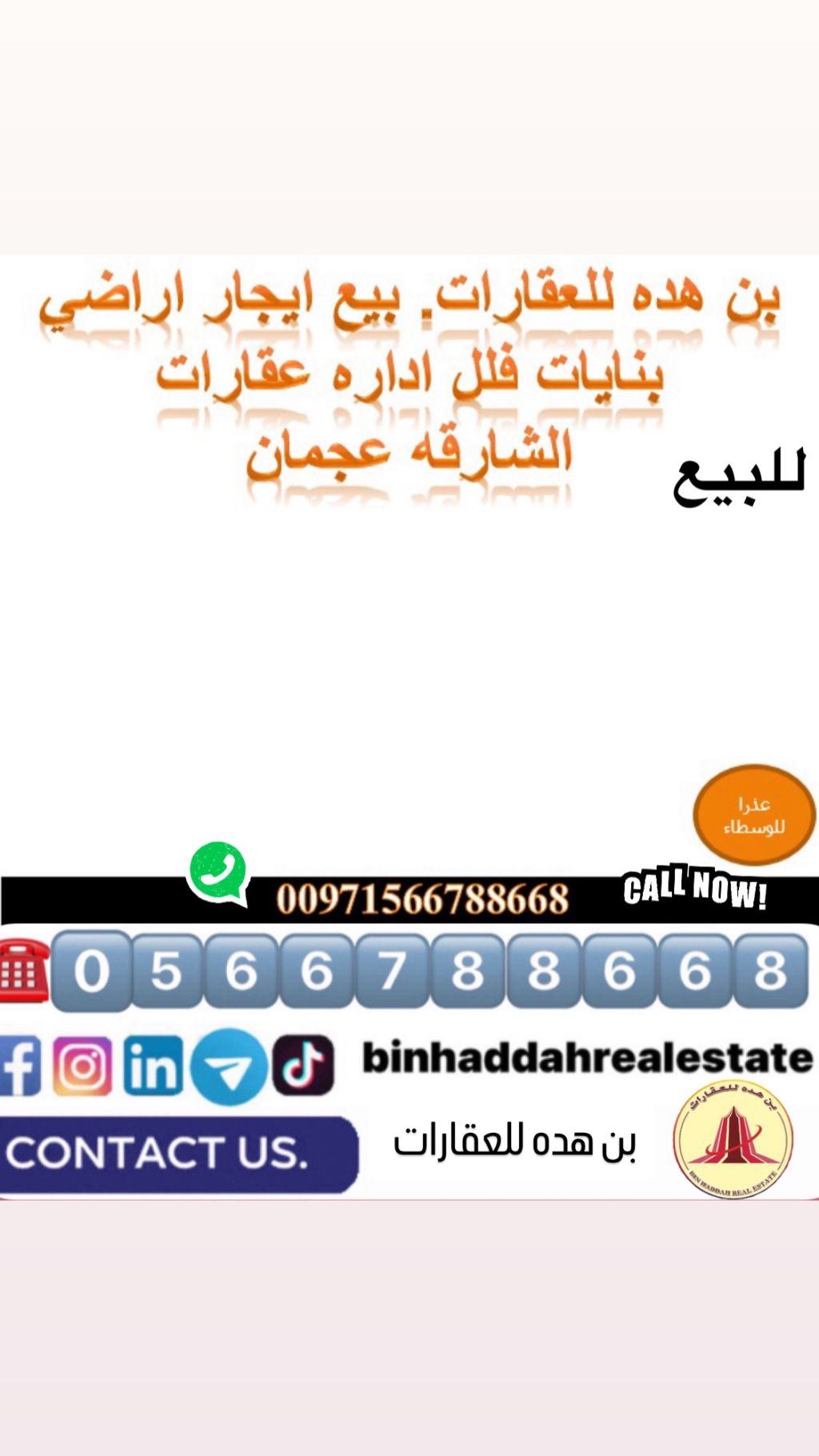 بيت للبيع في الشارقة منطقة أم خنور المساحة 2500 قدم مكون من 4 غرف 4 حمامات مؤجر حاليا 36 ألف تملك مواطنين وخليجي للتواصل