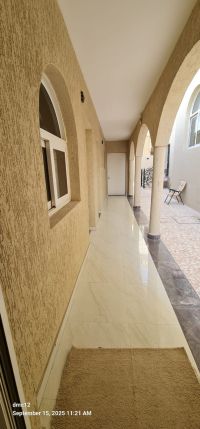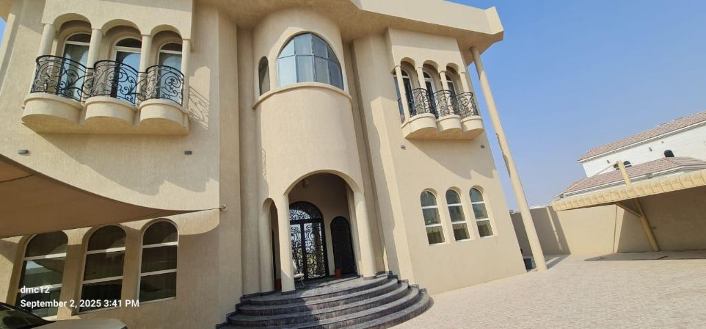 Villa for rent in Sharjah/ Al Rahmaniyah Corner, deluxe finishing Second plot from Al main Street 6 years old Total area approximately 10000 square feet (960 SQM) Near various markets Consists of two floors First floor Master bedroom, large living room, dining room Large hall, and storage room Second floor Four master bedrooms, a regular bedroom, and a large living room Annex (external