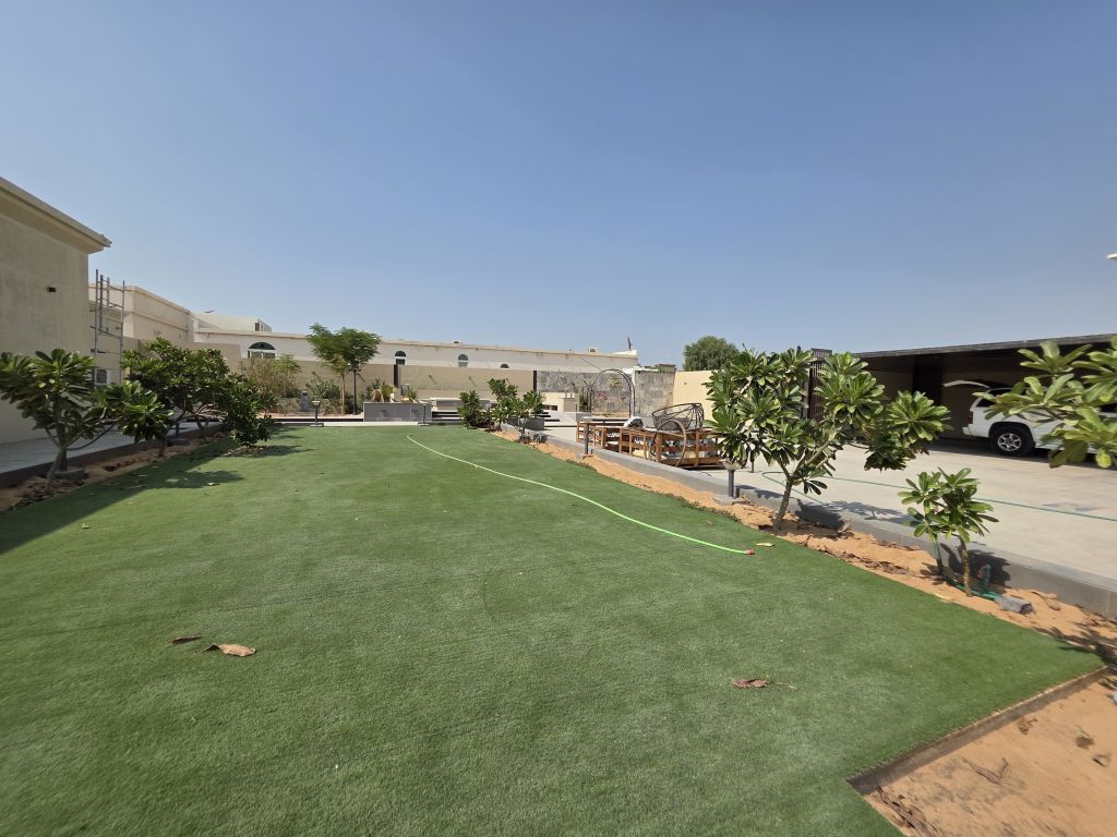For sale Super Deluxe Villa in Al Nouf 1 - Sharjah Luxury villa on a 30000 SqFt. plot, featuring 7 spacious bedrooms, 2 fully equipped kitchens, elegant glass entrance, full annexes, large parking space, beautiful garden with outdoor sitting area, central water filtration, and cooling system. Ready to move in - perfect for luxury living