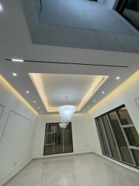In Al Ramaqiya Area - Wasit suburb - Emirate of Sharjah A brand - new first - occupancy villa is available for sale in a prime location, positioned on a corner with two streets and directly facing the mosque. The Villa features an elegant two - floor design with generous spaces offering a sophisticated and harmonious lifestyle. It includes six master bedrooms with dressing rooms, two Majlis areas, and two