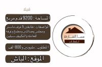للبيع فيلا الياش المساحة 9200 قدم مربع طابقين 5 غرف ماستر ومجلس وصالتين ومطبخ وغرفة للعاملة والتكييف سبليت المطلوب مليونين و800 ألف نهائي