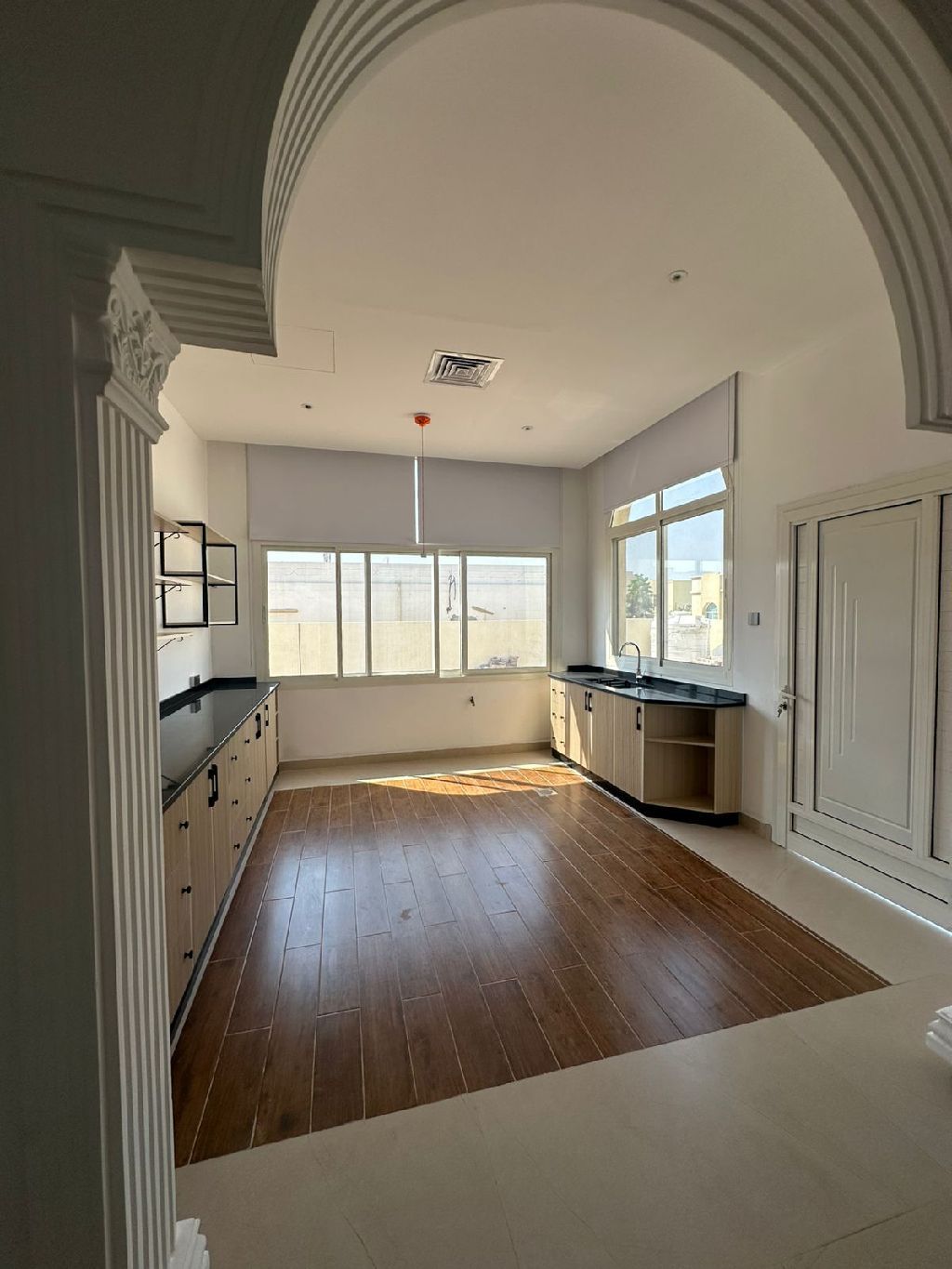 فيلا طابق واحد جديدة أول ساكن 5 غرف نوم ماستر وصالة ومطبخ + ملحق خارجي 17000 قدم مربع في القرائن 2 تكييف مركزي O General جاهزة للسكن مع الأثاث ومخازن الملابس السعر 3850000 درهم