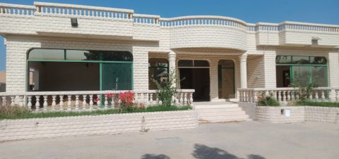 Corner villa for sale, super deluxe finishing, in Al Hooshi, Al Badi'a suburb, Sharjah. Land area 10000 SqFt Built - up area 7400 SqFt Corner location on an 18 - meter street and a 6 - meter alley Ground floor Courtyard with parking, garden area, Majlis, dining room with washrooms, large living room with washrooms, master bedroom, large internal kitchen, maid's room, and laundry room. First floor Large