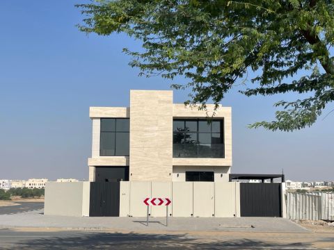 فيلا في منطقة الحوشي في الشارقة موقع مميز على شارع اسفلت سهلة الدخول والخروج على زاوية شارعين بالقرب من الخدمات مساحة الأرض 3444 SQM الفيلا طابقين الطابق الأرضي صالة ومطبخ وغرفة ماستر وغرفة خادمة وحمامين ومساحة خارجية الطابق الأول 3 غرف نوم ماستر وصالة موقف سيارة داخلي مغطى وموقفين خارجيين الفيلا جديدة ونظيفة سعر الإيجار 160 ألف درهم