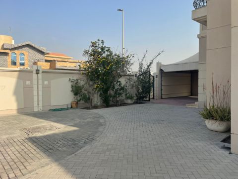 فيلا للإيجار - العزرة شارع المدارس 4 غرف نوم 3 صالات 5 حمامات حديقة خاصة غرفة خادمة مطبخ رئيسي + مطبخ تحضيري موقف مسقوف لسيارتين (باب أوتوماتيك) أرض 5500 قدم بناء 4500 قدم 210000 درهم سنويا