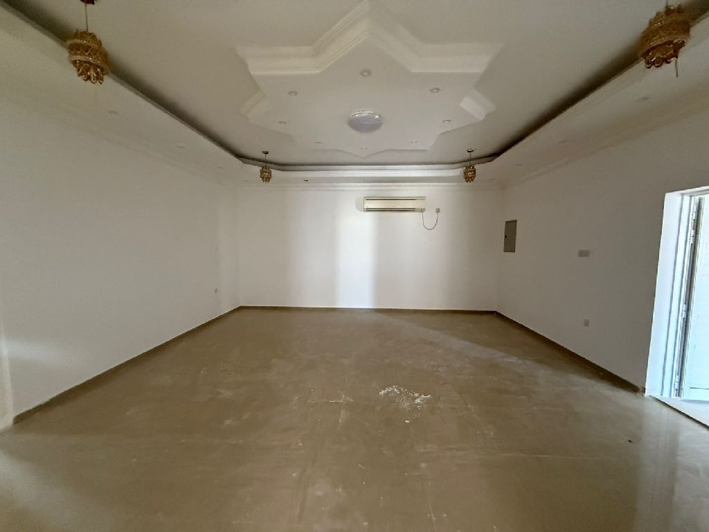 Villa for annual rent in Sharjah, Al Nakheelat area. One floor, very large yard, three spacious bedrooms, living room, two Majlis (formal sitting rooms) four external annexes, and a kitchen. Price AED120000, payable in four installments