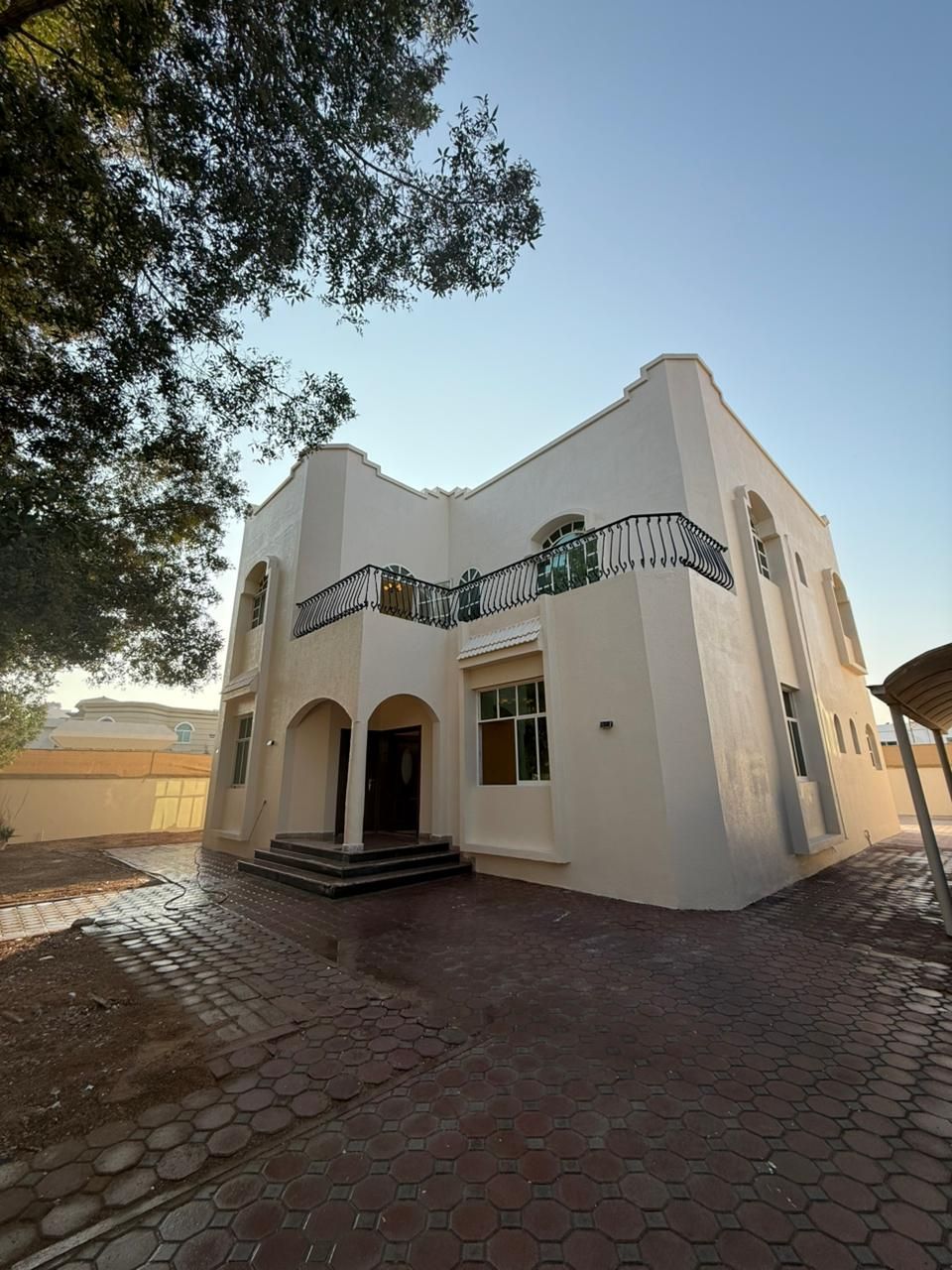 Villa for rent in Sharjah, Al Azra area, two floors Prime location, corner plot on two main streets Directly opposite the mosque Consists of 5 master bedrooms Majlis (formal sitting room) Living room Kitchen Maid's room Parking space Large yard required price AED170000