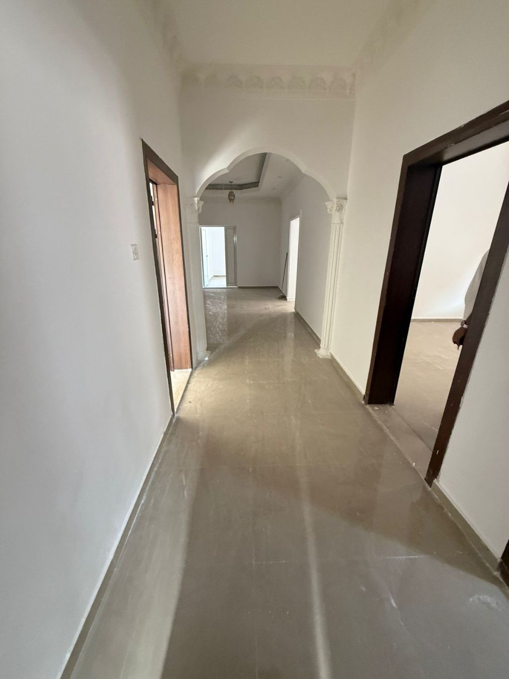 Villa for rent in Sharjah, Al Nakheelat, single - story with a very large yard. It includes 3 spacious bedrooms, living room, 2 Majlis, 4 external annexes, and a fully equipped kitchen. Price AED120000 per year. Suitable for employees and singles, located in a prime, secure area close to all services and facilities, offering privacy, spacious and comfortable living, with a peaceful environment ideal