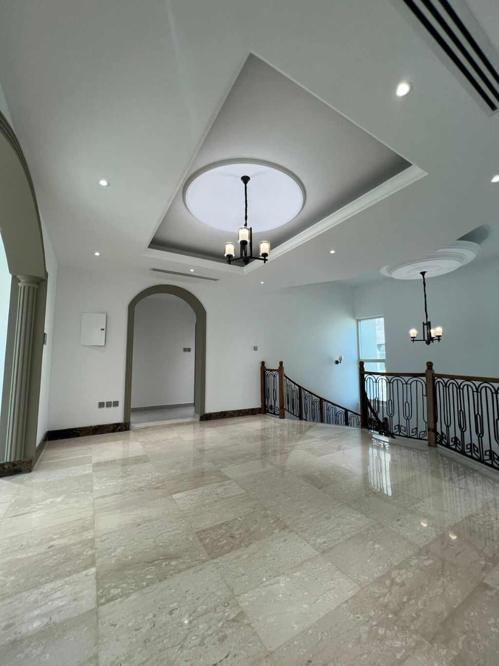Villa for rent, first occupancy, Al Fisht area. A luxurious villa located on the Corniche and close to Dubai. It features a very large area with 5 bedrooms, 2 living rooms, 2 reception rooms, and 5 bathrooms with super deluxe finishes. It includes central air conditioning and ample parking for several cars. The price is AED170000 per year, payable in 4 installments. A 5% security deposit is required